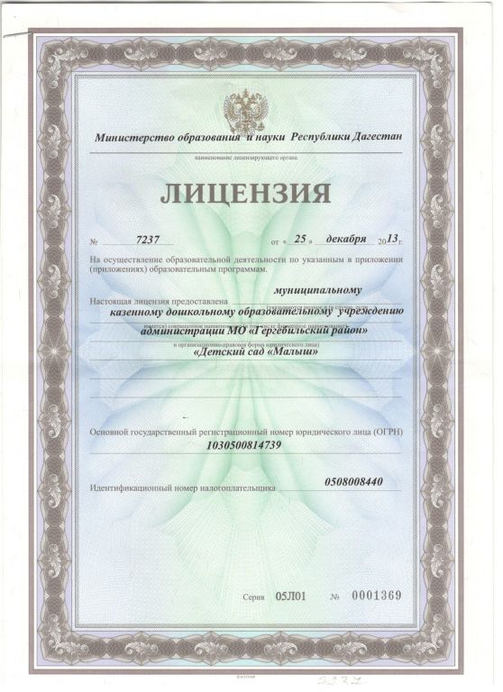 специалистов МКДОУ «Малыш»